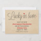 Roligt och charm Lucky i Kärlek Spara datum meddelande med en vismisk typografi som accentueras med små röda hjärtan och en faux texturerad papper bakgrund. Den här chicen sparar du det datum då inbjudan är perfekt för att tillkännage bröllop med modernt ljus! Enkel att anpassa, lägg bara till informationen om din speciella dag i fält. Klicka på knappen "Anpassa" för att hitta ytterligare anpassningsalternativ.