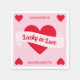 Ge ditt Las Vegas-möhippa en extra skjuts med våra personliga 'Lucky in Love' möhippe-servetter! Prydda med ett charmigt hjärta och den festliga texten 'lucky in love' sätter dessa servetter den perfekta tonen för en oförglömlig fest. Lägg till brudens namn för en personlig touch som stärker det unika i er sammankomst. Designade i livfulla rosa och röda färger fångar dessa servetter den livliga andan på Vegas. Oavsett om du går längs Strip eller är värd för en glamourös soaré är dessa servetter den perfekta accenten för att höja din festdekor. Tillverkade av premium-material är de inte bara servetter – de är älskade minnen av de oförglömliga minnen du skapar med din brudstam. Gör varje skål speciell och varje ögonblick oförglömligt med våra personliga 'Lucky in Love'