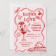 Fira med stil med denna inbjudan till möhippa med tema Las Vegas, ”Lucky in Love”, en fantasifull och djärv design som fångar brudens sista firande före vigseln. Mot en mjuk rosa bakgrund visar inbjudan röda klotter av en showgirl i ett cocktailglas och diverse Vegas-tema ikoner – som alla ger associationer till glamour och energi under en Vegas-resa. Fullt anpassningsbar text låter dig lägga till brudens namn, datum, destination, resplan, RSVP och andra detaljer, vilket gör den perfekt för att skicka till vänner och familj i samma stad eller runt hela världen. Använd den som ett tryckt minne eller digital inbjudan för att sätta tonen för en glamourös helg full av kul. Perfekt för destination möhippa, casino-tema brud shower eller helg- resplaner, denna inbjudan säkerställer att gästerna vet exakt hur mycket kul de kan förvänta sig. Oavsett om du planerar en vild helg eller en elegant Vegas-eskapad, levererar denna anpassade