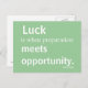 Motivering och uppmuntran av svarta och vita vykort. "tur är när förberedelser möter möjligheter." - Paul Fargis.