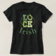 En söt och modern "tur för irländare" St. Patrick's Day t-shirt. Texten är "LUCK" och "Irish" i en rolig grön typografi. Svart bakgrund.