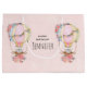 Stor presentväska med en snygg design med en vattenfärgad illustration. En luftballong dekorerade med söt rött och rosa blommor. En söt liten vit björn i baby ligger i basket. Ljus rosa bakgrund.