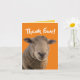 Ett lyckat foto av ett tacke (ett honfår) med frasen "Tack!" ovanför det. Ett sött tack för djur älskare.