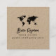 Ett elegant kvadratiskt affärskort för en professionell som arbetar med små gruppresor.. svarta karta i världen, logotyp, manusskript namn, yrke och ytterligare information...