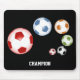 Tur uppsättning av fotbollar på svart musmatta