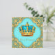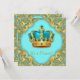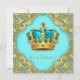 Turblå och guld prins baby shower med turblå och guld krona på en vacker turblå och guld virvelbakgrund. Denna snygga turblå och guld prins baby shower inbjudan kan enkelt anpassas för ditt evenemang genom att helt enkelt lägga till dina detaljer i typsnitt, färg, formulering och layout som du önskar.
