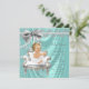 Elegant turkosblå och silvergrå baby shower-inbjudan med söt liten flicka som bär en söt vit tutu-klänning och pärlor i en vacker vit stol på en vacker glittrig satin- och pärlbakgrund. Denna eleganta, flickaktiga turkosblå och silverglittrande satin-pärl-baby shower-inbjudan kan enkelt anpassas för ditt evenemang genom att helt enkelt lägga till dina uppgifter i den formulering och typsnittsstil du väljer. Detta är en tryckt design utan riktig satin, pärlor, glitter etc. Du kan ta bort satinbakgrunden och lägga till din egen färg.