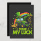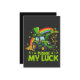 Grävmaskin, St. Patricks dag, lyckotalisman, leopardhatt, bygghumor, rolig högtidsdesign, irländsk firande, grön dag-humor.