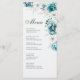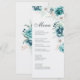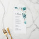Presentera din meny med stil med detta tealfärgade botaniska menykort för bröllop. Vattenfärgade vilda blommor och mjuka botaniska accenter formar designen, medan elegant typografi håller layouten raffinerad och lätt att läsa.