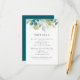 Se till att dina gäster har all information de behöver för din speciella dag med detta vackert designade inklusionskort för bröllopsdetaljer. Med en graciös tealfärgad botanisk design i akvarellstil kombinerar kortet mjuka blommor och frodig grönska i eleganta, lugnande tealfärger. Detta kort är det perfekta komplementet till din bröllopsinbjudan och erbjuder ett förfinat sätt att dela viktig information om din fest.