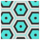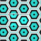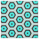 Sömlös geometrisk mönster med sexkantiga former i turkos och svart på vit bakgrund.