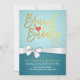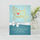 Brunch- och Bubly Inbjudningskort för möhippan-kortmallar. Elegant Guld Handskriven teckenskrift för typografi med Vintage Vit menyfliksområde och turkosa bakgrund. En Perfekt för din stora dag. Alla textstorlekar i stil, färg, kan ändras för att passa dina behov!