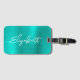 Ett första resetagg för affärskortet i namn för hennes affärsresa. Skriptet är ett underbart, penseldrag, modernt handskript som är en perfekt gåva till henne. Den dekorativa penseldraget stil kan kräva att du åter centrerar namn. Du kan också anpassa teckensnittet färg och calligraphy stil. Bakgrunden har en turkos ombre borstad metall-folie. Den glamorösa digitala konsthistoriken skrivs ut som ett foto.