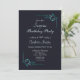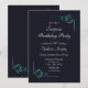 En elegant vid midnattsblå överraskning 18:e födelsedagsfest inbjudan med turkos eller blommigt löv förskönade hörnen till ram om detaljerna i inbjudan.
