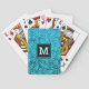 Ett turkosmönster och ett blått kompakt dammmönster i löv på en rik, djupa turkoser med texturerad bakgrund adderar detta fantastiska, moderna, trendig monogram-spelkort. Gör en chic och snyggt påstående när du användor dem. Säkert att lägga till lite bonus tur! Skriv bara in det första du vill och du kan enkelt anpassa de här spelkorten. Var snäll och meddela mig med eventuella frågor eller förfrågningar.