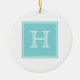 Lägg till initialer eller annan text om du vill anpassa den här enkla och moderna ornamenten på kvadrat i turkos och vitt. Detta trendig och denna chic skulle göra en enkel dekoration.