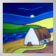 En utskrift av en irländsk konsmålning av Catherine Ashton. Ett typiskt irländskt Thatched Cottage vid havet. Den här bilden är tillgänglig för andra produkter.