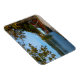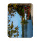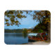Rektangulär fotomagnet av traditionella färgstarka turistbåtar i Sjö Bled under en kastanj träd höst färger i ett höstlandskap i Slovenien.