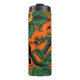 Tropiskt sömlöst mönster med tropiska löv och blommor och 2 tukanfåglar.
