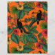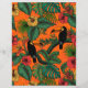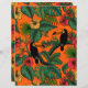 Tropiskt sömlöst mönster med tropiska löv och blommor och 2 tukanfåglar.