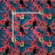 Tropiskt sömlöst mönster med tropiska löv och blommor och 2 tukanfåglar.