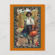 En bonde rymmer en kalkon i en räcker och en pumpa i annan. Bak honom är ett fält av majstjälkpackar och pumpor. Turkiet befjädrar, och wishbones inramar denna vintagethanksgivingvykort från 1908.