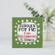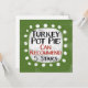 En lustig typografisk design som säger "Turkiet Pot Paj: Can Recommend, 5 Stars". Det är svart och röd text på en vit rektangel med funky, lekfulla vita prickar runt den, allt på gröntens bakgrund.