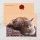 Räven (Foxy) sitter på en turkisk matta . Design med rött vax sigill monogram baksida. Foto och digital grafisk design av Bulgan Lumini (c)