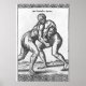 Fransk School's Turkisk Wrestlers, illustration från "Les navigations, peregrinations et voyages, felcts en la Turkie" av Nicolas de Nicolay, publicerad 1577 (woodcut) vid en privat samling. De turkiska brottskårerna, illustrerade av Nicolas de Nicolay, "Les navigations, peregrinations et voyages, felcts en la Turkie", som publicerades 1577, skapades omkring 1577 AD.