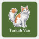 Den turkiska Van Sticker har den atletiska och äventyrliga turkiska Van-kattrasen, känd för sin halvlånga päls och sitt speciella van-mönster på huvud och svans. Det här klistermärket är idealiskt för kattentusiaster och fångar den turkiska Van-kattens energiska och lekande personlighet i en charmig och ögonfångande design.