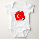 Visa din pride i det turkiska fotbolllaget vid köpande denna gåva som presenterar den turkiska flagga, landnamn Turkiet och ett fotbollbollflyg över grunden av flagga