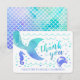 Tacka alla dina familjemedlemmar och vänner för att de kom till din dotters Siren födelsedagsfest med havstema med dessa turkosa och lila akvarell tackkort.
