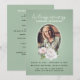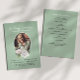 Eleganta begravningsprogram i teal med mjuka blomaccent ger ett vackert och meningsfullt sätt att fira en älskad persons liv. Framsidan har en central porträttbild omgiven av ömtåliga vattenfärgblommor, tillsammans med orden ”In Loving Memory”, namnet och livsdater i en graciös kombination av skrivstil och seriffer. Den lugnande tealfärgade bakgrunden ger en lugnande och stillsam touch, vilket gör denna design både modern och tidlös. På baksidan beskrivs ordningen för ceremonin tydligt, inklusive musikval, psalmer, läsningar och avslutande detaljer, vilket säkerställer att gästerna enkelt kan följa med under ceremonin. De blomsterdetaljerna ger en varm och tröstande estetik samtidigt som de bibehåller en förfinad och värdig stil, vilket gör den lämplig för begravningar, minnesstunder eller livets firande. Utöver sin roll som guide fungerar detta program också som en bestående souvenir, som