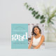 Se till att alla dina vänner och släktingar fortfarande kan fira din examenstågare milstolpe trots nuvarande globala oförutsedda omständigheter. Skicka ut detta fantastiska, enkla, moderna, personliga fotokort "Ändrade planer" för en händelse att minnas. Fet, grafisk, vit typografi överlagras en turkos akvablå bakgrund. På höger sida läggs ett foto efter eget val. Anpassa den anpassade texten med din examenstågares namn, examensår och datum. Ditt anpassade meddelande, en turkos akvablå examensmössa-ikon och din returadress pryder baksidan. Matchande inbjudningar, tackkort, m.m. finns också tillgängliga i denna trendiga och stilrena kollektion. Se till att deras speciella firande fortfarande blir lika festligt som ursprungligen planerat!