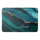 Turkos Aqua Blå Grön och Guld Folie Agat Geod Monogram Vacker Elegant Skript Namn Badrum Badrumsmatt. Detta gör den perfekta söta 16, 13:e, 15:e, 16:e, 18:e, 21:a, 30:e, 40:e, 50:e, 60:e, 70:e, 80:e, 90:e, 100-års födelsedag, bröllop, brud shower, årsdag, baby shower, examen eller möhippa present till någon som dekorerar sitt rum i modern trendig chic stil.