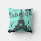 Turkos aqua teal scripts Paris Eiffel Torn Kudde