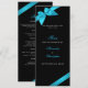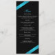 4" x 9,25" Turkos band på svart bakgrund. Elegant, fullt anpassningsbar bröllopsmeny mall.