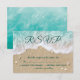 Detta är en roligt och tropisk OSA mot bakgrund av turkos över havets vinkara och strandsand, accentuerad med sjöceller och stjärnfisk, som perfekt stämmer överens med den Bat mitzvah inbjudan till Turcoise Beach Vågar. Baksidan av detta responskort dekoreras ytterligare med mer turkos över vinkara havet. Denna inbjudan visas på den pappra projektionsytan, men vikten och struktur på den vita filten papper är mitt favoritval. Om du behöver ytterligare uppgifter för firande kan du kontakta oss på prettyfancyinvites@gmail.com med din begäran.