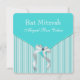 Turkos blå och vita ränder Bat Mitzvah-inbjudningar. Du kan enkelt anpassa denna snygga turkosa blå Bat Mitzvah-inbjudan genom att helt enkelt lägga till dina uppgifter i den typsnittsstil och den formulering du väljer.