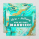 Meddela din traditionella eller destination bröllop med denna lätt uppdaterade mall. Fyll bara i namn, ålder, datum, tid, plats för festen och eventuella RSVP-anteckningar eller annan information. Ändra från "Marc och Anthony gifter sig!" till "Willoughby's firar jul!". Finns i många mönster för varje tillfälle. Den eleganta designen har en alkoholbläckmålning med turkos blågröna och teal med vita marmorerade accenter. Falskt 24K guldblad kompletterar det lyxiga mönstret.