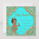 Turkosblå och guld färg baby shower inbjudan med en söt etnisk prins som bär en tealblå turkos blöja och en vacker guldkrona på en vacker tealblå turkos och guld virvlande bakgrund. Du kan enkelt anpassa denna eleganta turkosa baby shower inbjudan för ditt evenemang genom att helt enkelt lägga till dina detaljer i den teckensnittsstil du väljer. Du kan också ta bort det turkosa lagret och lägga till din egen färg. Detta är en tryckt design utan verklig glitter, juveler etc.