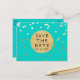 Turkos Blå & Guld Glänsande Konfetti Spara Datum Vykort. Matchande artiklar tillgängliga.