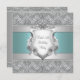Elegant turkosblå med silvervit blomsterdekoration sköld kvinnas 21-årsfirande inbjudan.
