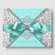 Turkos gästbok med vacker diamantbåge på en turkos och silvergrå damask virvelbakgrund. Denna eleganta turkos gästbok kan enkelt anpassas för ditt evenemang genom att helt enkelt lägga till den text du väljer. Detta är en tryckt design utan riktiga juveler, band etc.