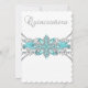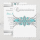 Vacker turkosblå och silverfärgad inbjudan till Quinceanera-fest. Denna eleganta turkosblå födelsedagsinbjudan till Quinceanera-fest kan enkelt anpassas för din fest eller ditt evenemang genom att helt enkelt lägga till dina evenemangsuppgifter, typsnitt, teckenstorlek och färg samt formulering. Observera att alla inbjudningsdesigner du hittar på Zazzle är tryckta grafik på vanligt papper utan faktiska ädelstenar, band, upphöjda, präglade eller tillagda delar eller detaljer.