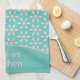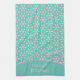 Turkos Blå Söt Rolig Blomma Köks Handduk. Personliggör med ditt namn!