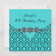 Turkos blå svart damask kvinna valfri siffra födelsedagsfest inbjudan.