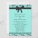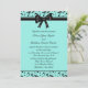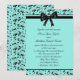 Turkos blå och svart virvelrankdesign insvept i ett vackert svart band 5x7 bröllopsinbjudan.