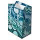 Vacker blå presentförpackning med effekten av vattenliknande virvlar i en abstrakt presentpåse för födelsedagar, baby shower, bröllop eller andra tillfällen.