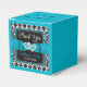 Den här personligen och romantiska bröllopsaffären är perfekt till använda vid ditt bröllopsmottagning, möhippa eller andra bröllop-evenemang. De här svarta och vita dammkorna med turkosa blå bröllopsboxar är säkert en minnesvärd slå med dina gäster med spelar ingen roll söt behandling du placerar i. Den fyrkantiga rutan har en turkoshöjande blå bakgrund över hela färg, förutom framsidan och baksidan som är svart och vit dammformsmönster med turkos eller tealblått band och med en gått med hjärtebild över centrum med ord, "Tack" i vitt ovanför bandet och namnen på bruden och brudgummen under ribban i turkos och vitt utskrift. Anpassadets text i toppen av denna tjänst lyder: "Kärlek är Sweet! Njut av detta fördrag!" med en vit dekorativ rulla mellan de två linjer. Om du behöver några andra matchande objekt kan du skicka e-post till niteowlstudio@gmail.com och titta på skräppostmapparna för mitt svar, eller använda Zazzle-chattan för att kontakta mig.